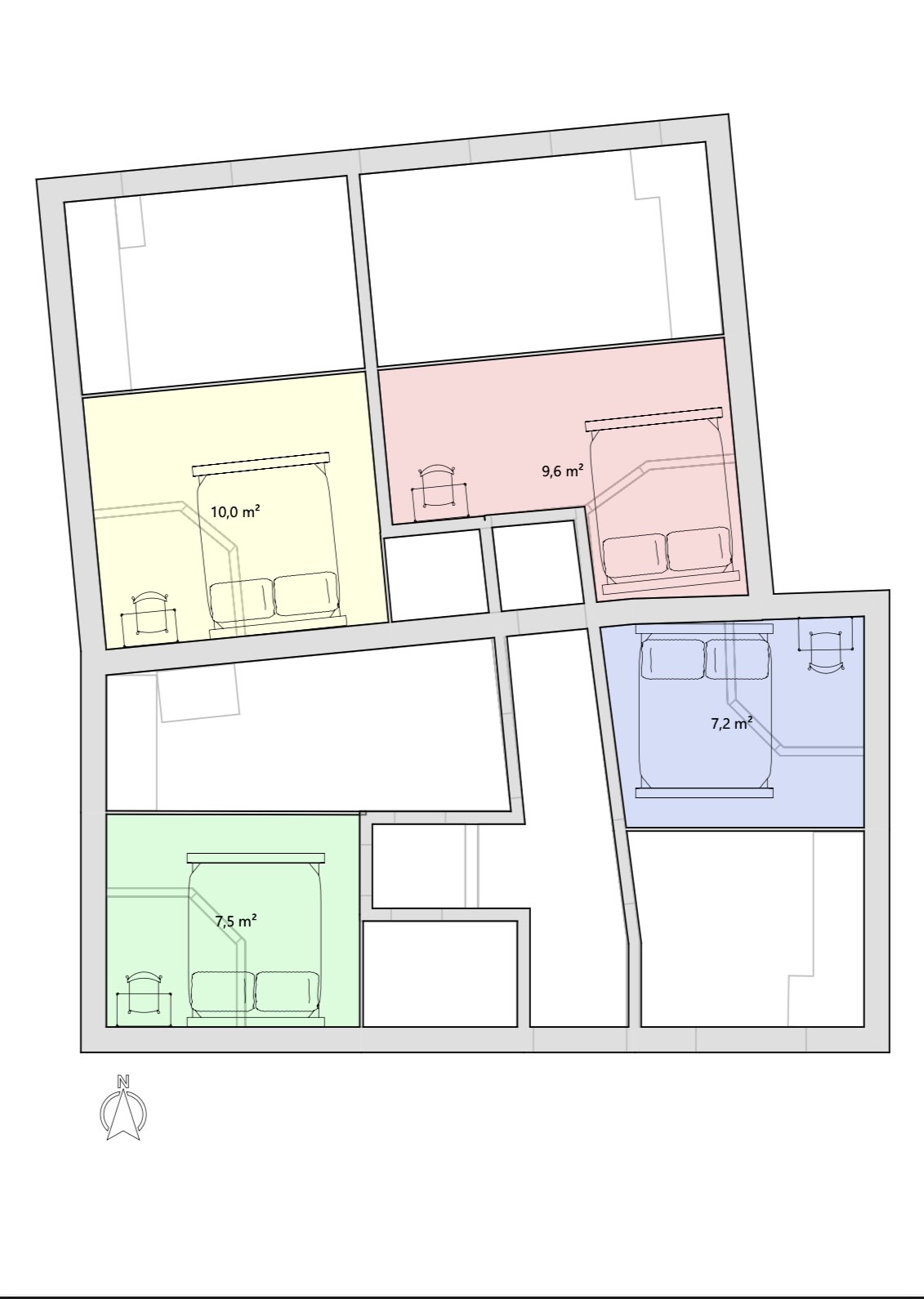 Az ingatlan eredetileg egy nagy, lakás volt, (70nm) amelyet négy különálló, modern stúdiólakássá alakítottak át.